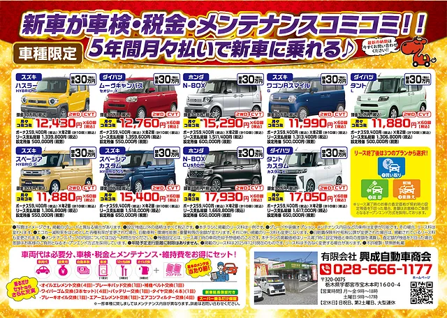 栃木県宇都宮市にある興成自動車商会では、お客様のトータルカーライフをサポートいたします。