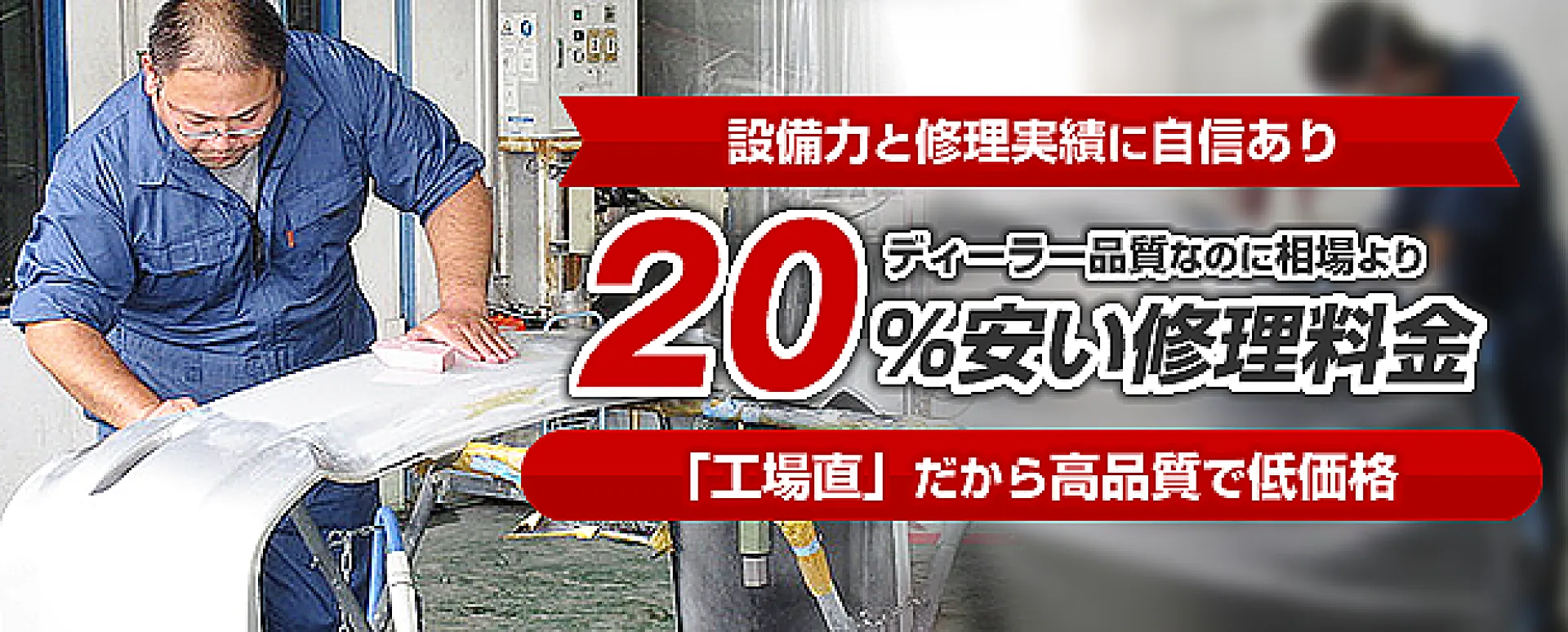 興成自動車商会は、充実した設備とベテラン整備士による高い技術で高品質な板金塗装をお約束します。当社は、板金塗装(車のキズ・ヘコミ修理)の実績が豊富。「ディーラー品質を低価格で」をモットーに、高品質の修理をできるだけコストを抑えてご提供させていただいております。