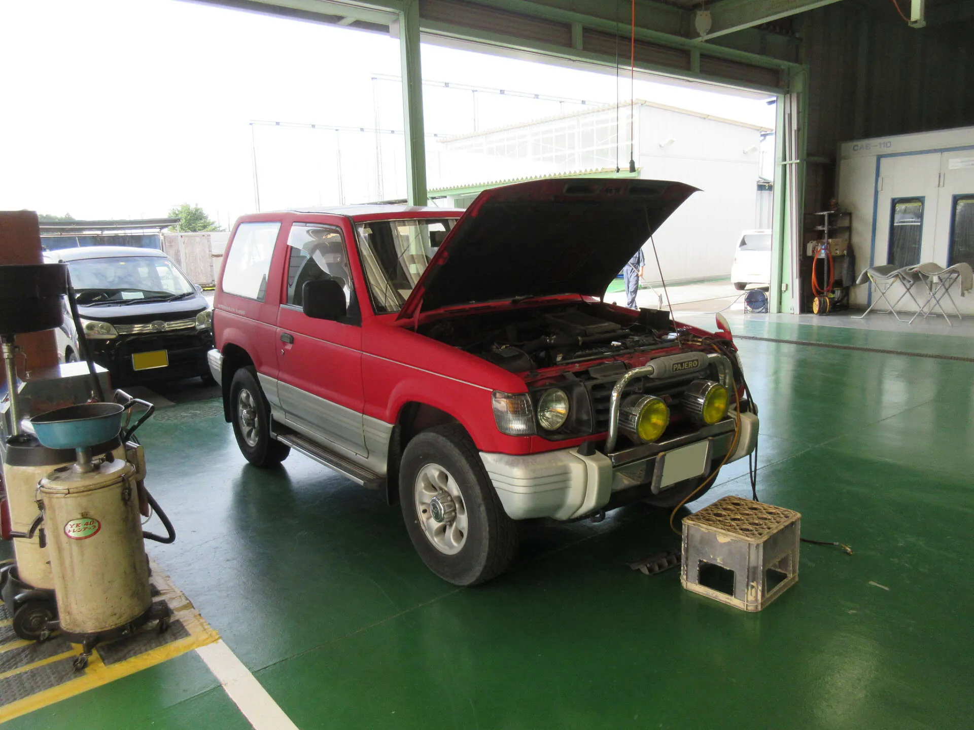 宇都宮市にお住まいのお客様より、「エアコンの風が冷えない」とのご相談をいただき、三菱 パジェロをお預かりしました。